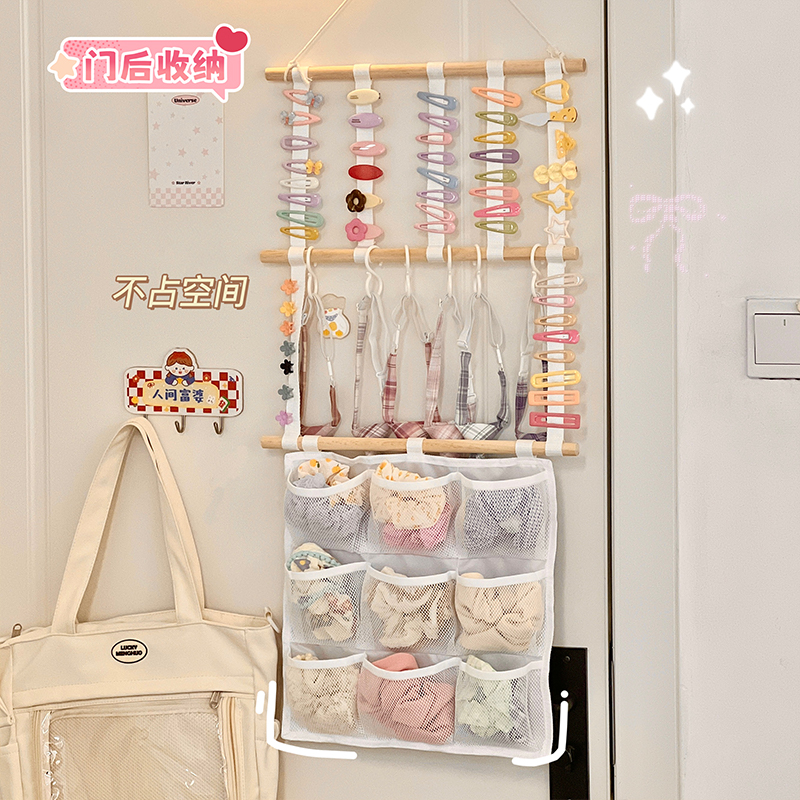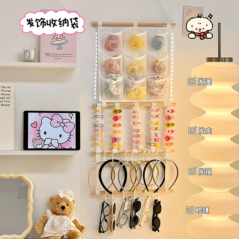 简约网纱多功能发饰头绳发夹收纳袋创意免打孔发箍发圈分格整理袋