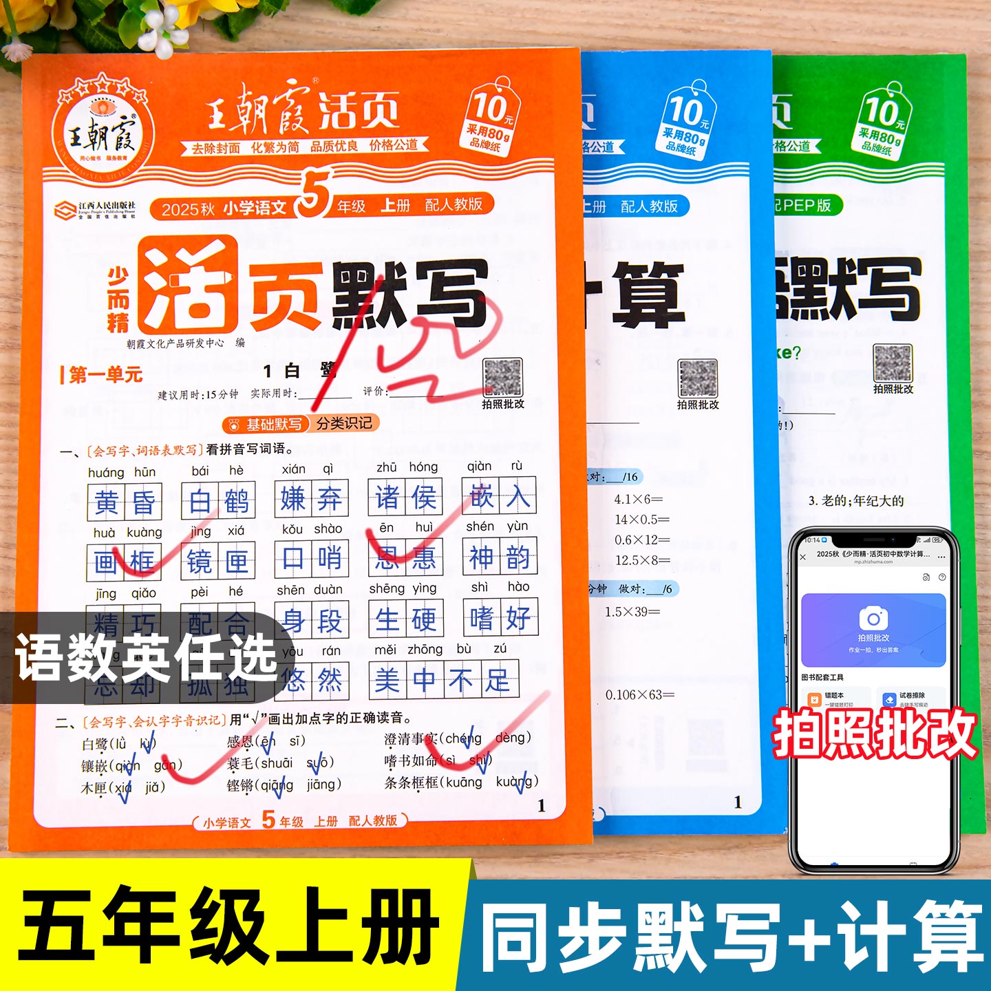 五年级上册王朝霞活页默写活页计算同步训练语文数学英语教材同步练习册人教版 北师苏教小学5年级上册口算天天练一课一练专项训练