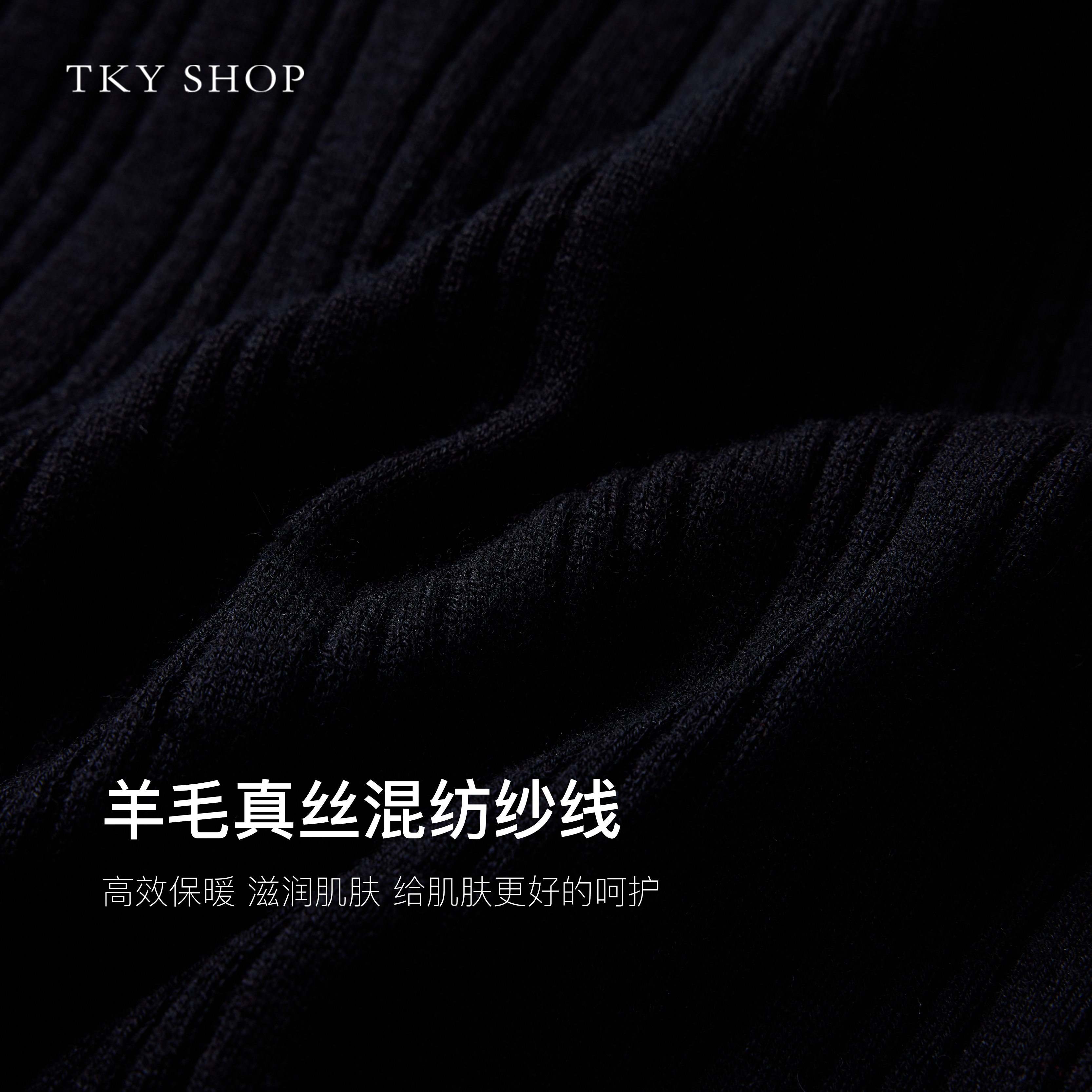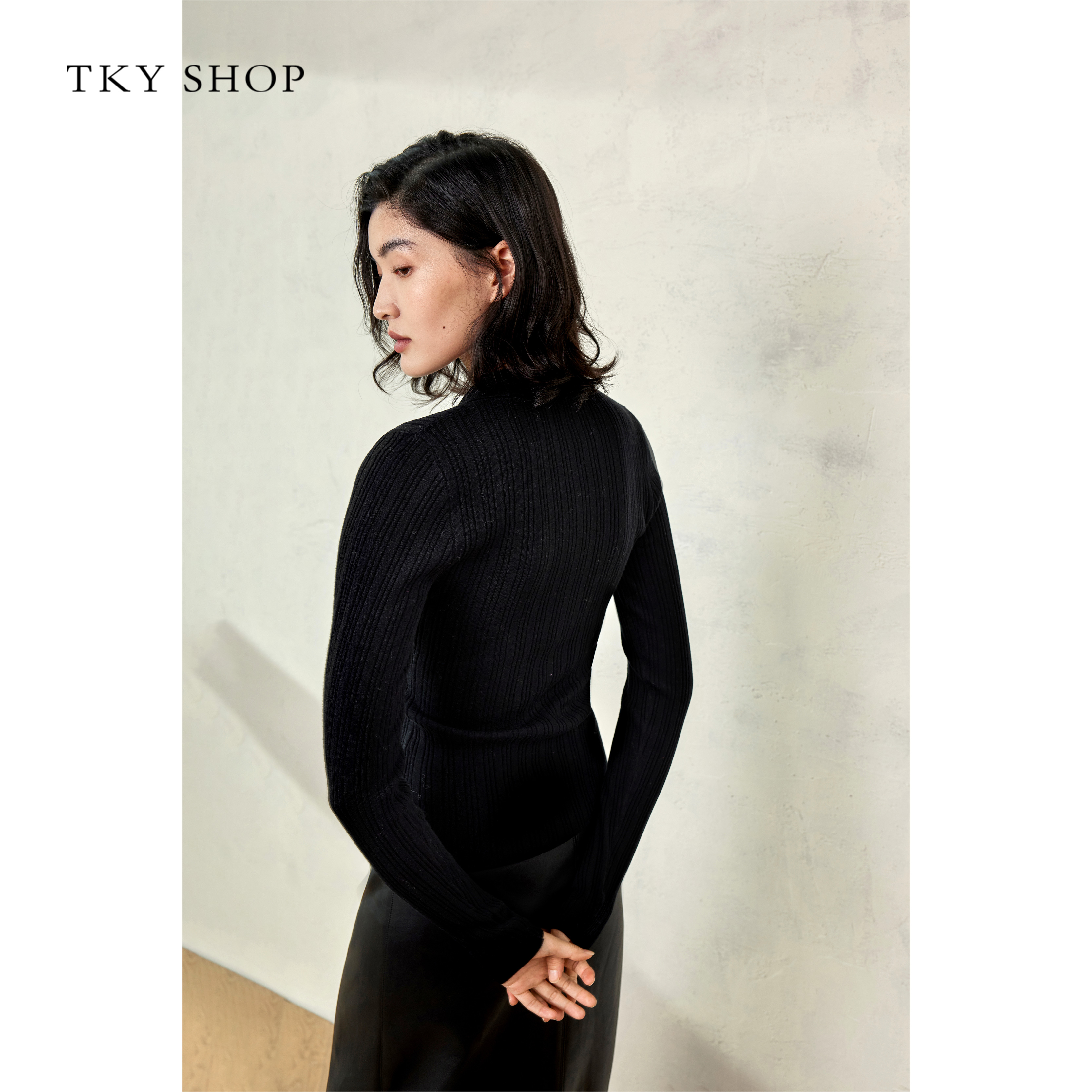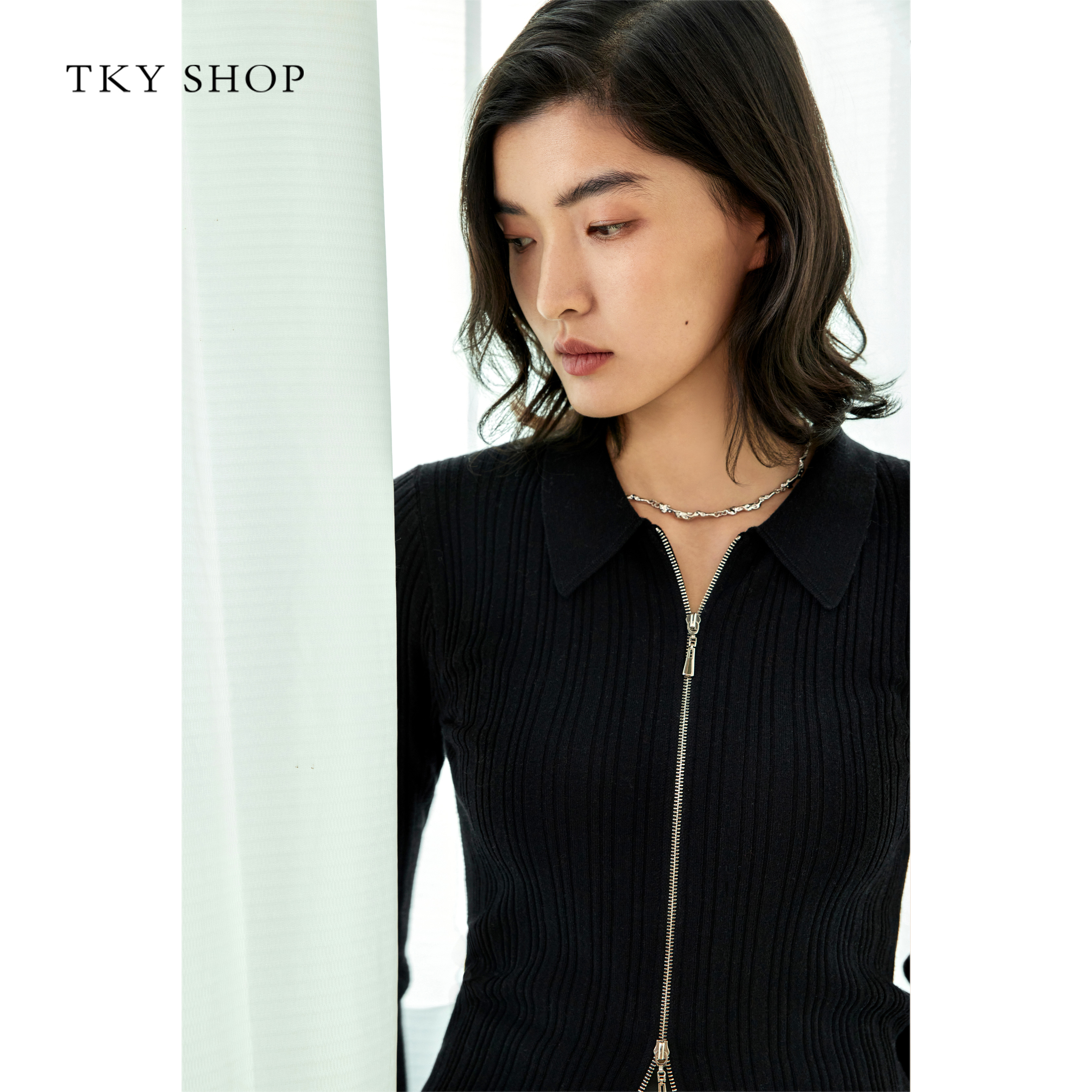 新款 TKY 女2025春季 针织开衫 百搭显瘦羊毛真丝上衣 SHOP双拉链修身