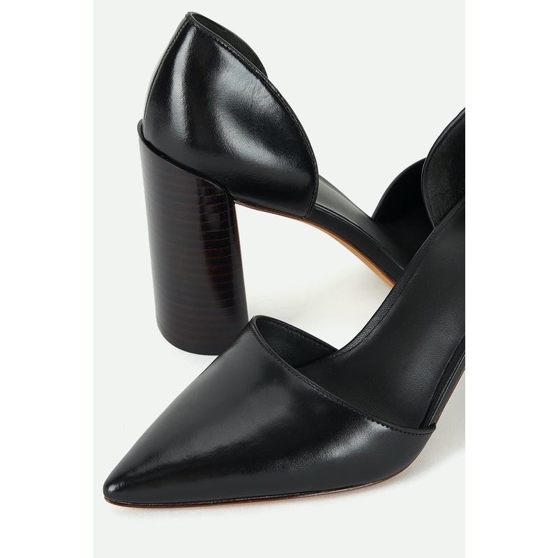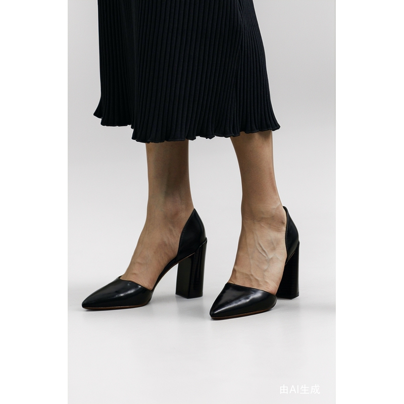 不累脚仙草 秋冬羊皮尖头粗跟职业通勤浅口单鞋 7or9黑色高跟鞋 女鞋