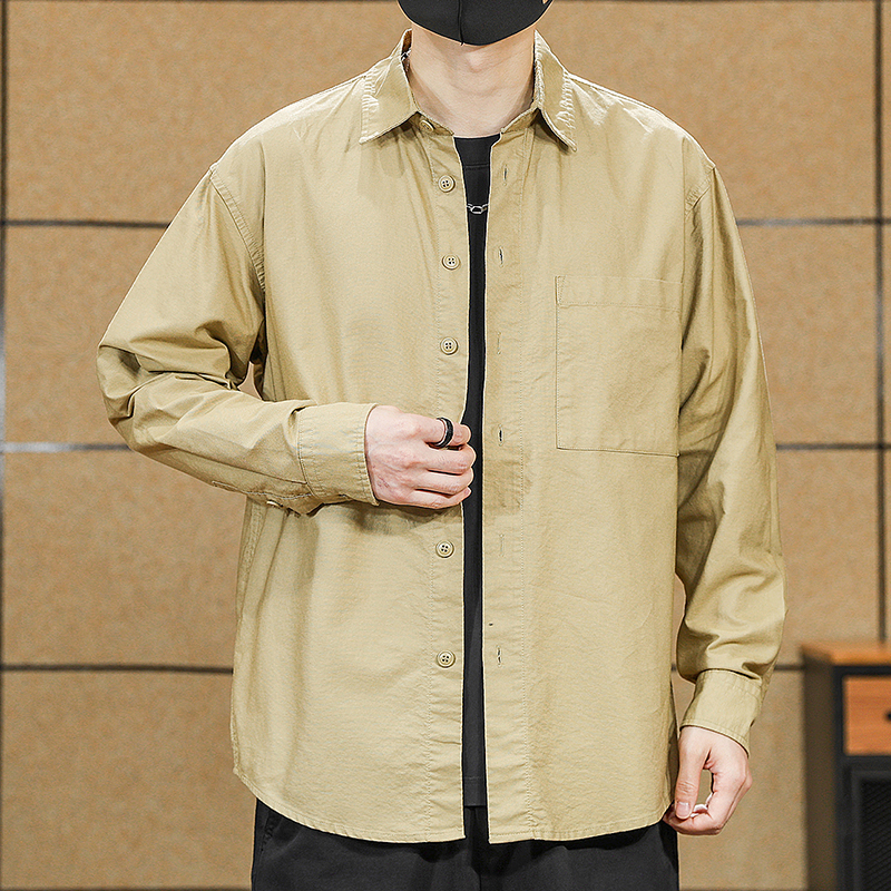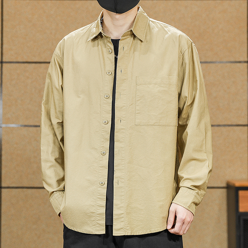 撞色格子口袋休闲宽松美式 男长袖 翻领衬衣510182 衬衫 三福2025冬季