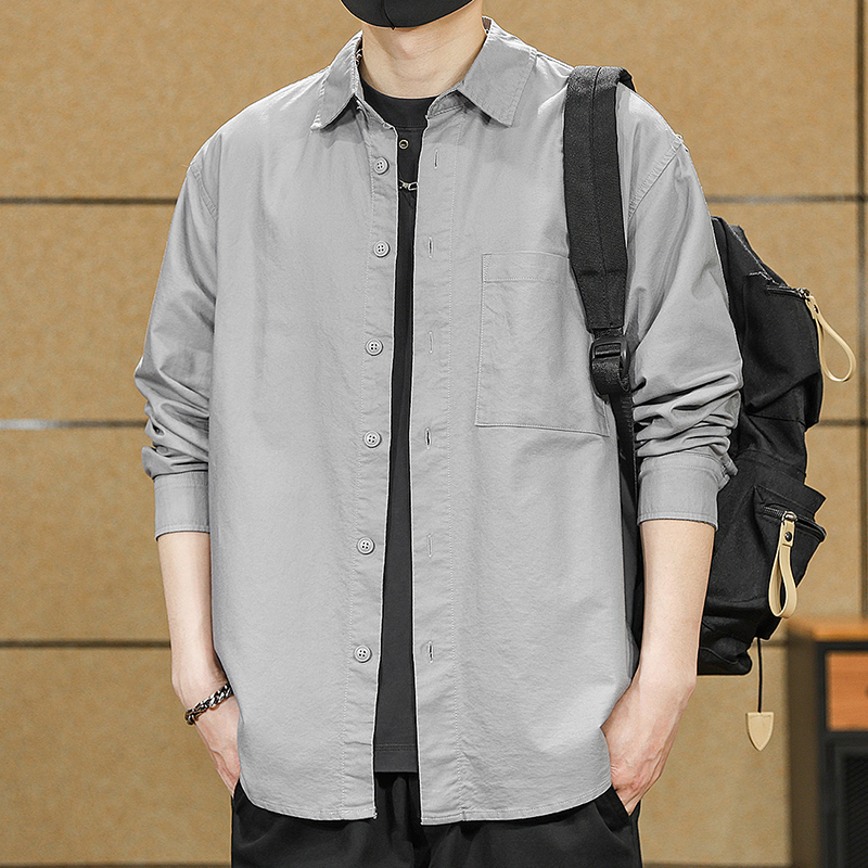 新款 男日系潮流秋季 纯棉宽松休闲廓形衬衣 衬衫 VR97泡泡纱条纹长袖