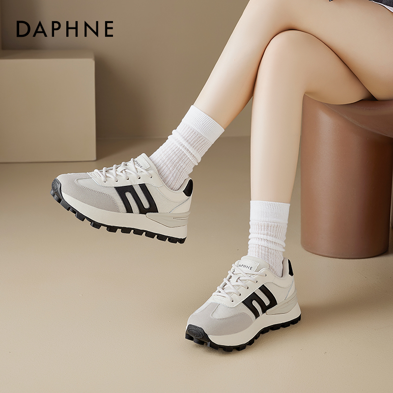 女款 休闲轻便运动鞋 2025春季 百搭增高老爹鞋 新款 达芙妮厚底德训鞋