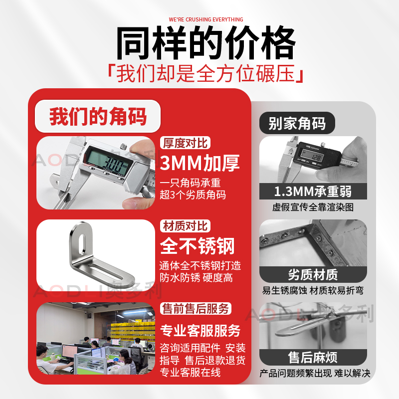 可调节长孔角码 L型固定直角片 不锈钢角铁承重支撑架隔板固定托T