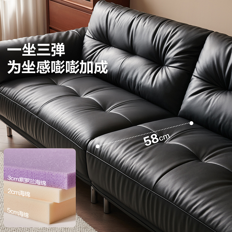 法莎蒂意式 极简皮艺直排棉花糖沙发 极简拉扣真皮沙发小户型意式