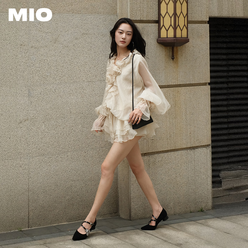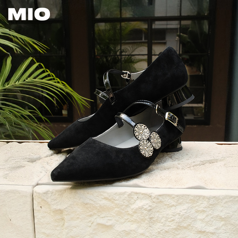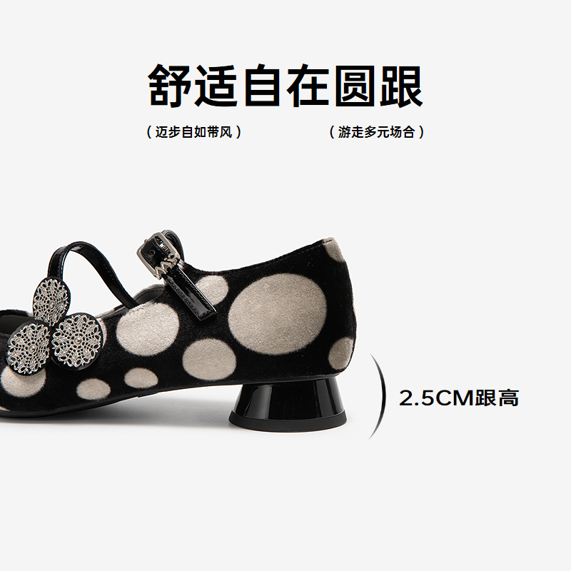 复古波点浅口单鞋 MIO米奥凉鞋 气质尖头玛丽珍鞋 新款 女2025春季