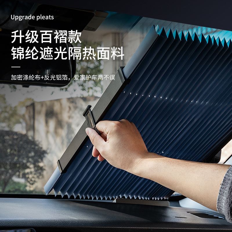 汽车遮阳挡遮光窗帘自动伸缩车载前档遮阳板隔热免打孔百褶遮阳帘