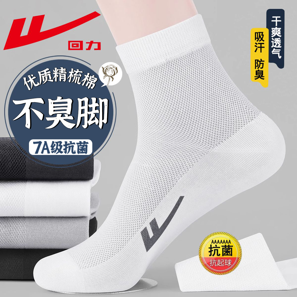 袜子 新疆棉7A抗菌防臭灰色男士 回力袜子男网眼透气中筒袜夏季 薄款