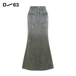 修身 D63女装 复古做旧水洗中长款 新品 鱼尾牛仔松弛感半身裙 25春季