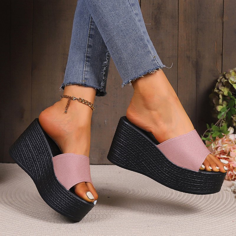 凉拖鞋 超高跟坡跟凉拖鞋 防水台厚底增高一字拖外贸大码 新款 女夏季