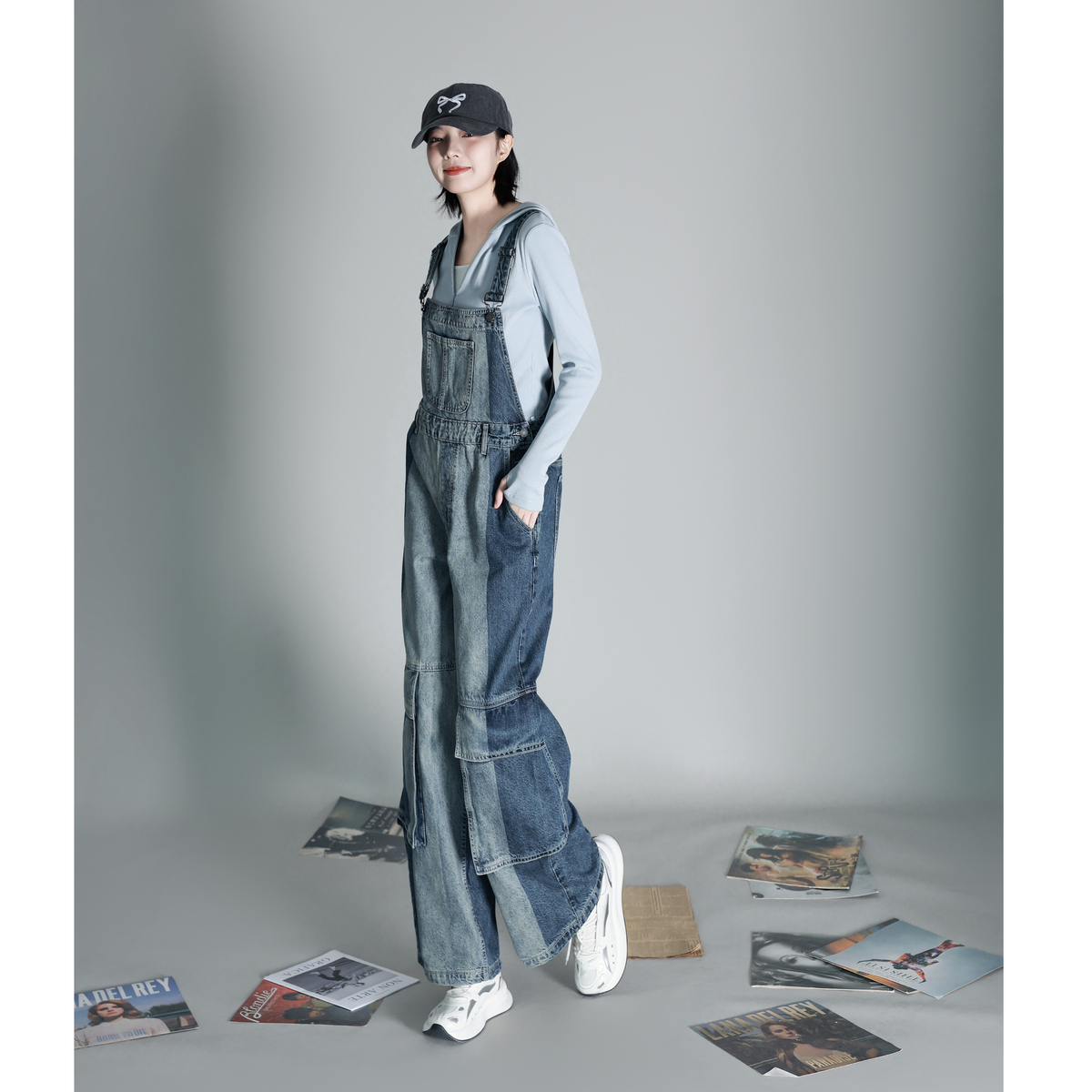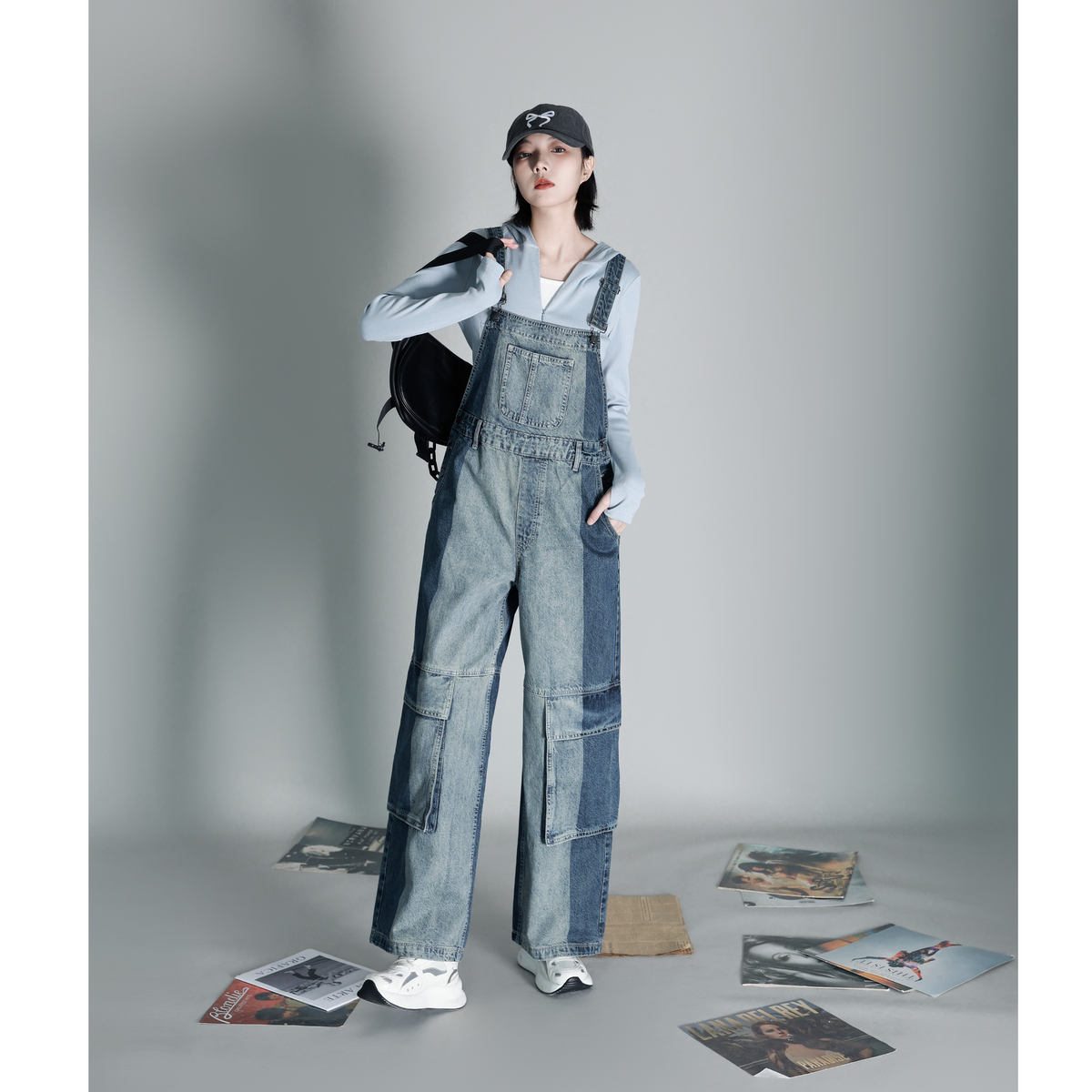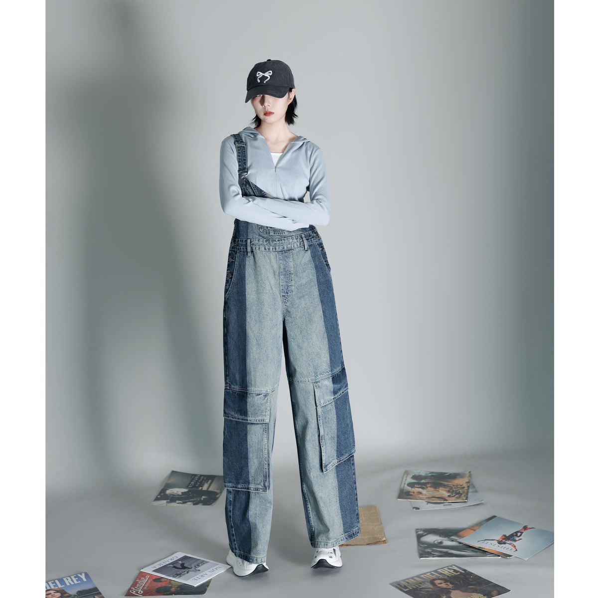 气质撞色休闲裤 西町村屋工装 新款 女春季 XHAA10220 水洗牛仔背带裤