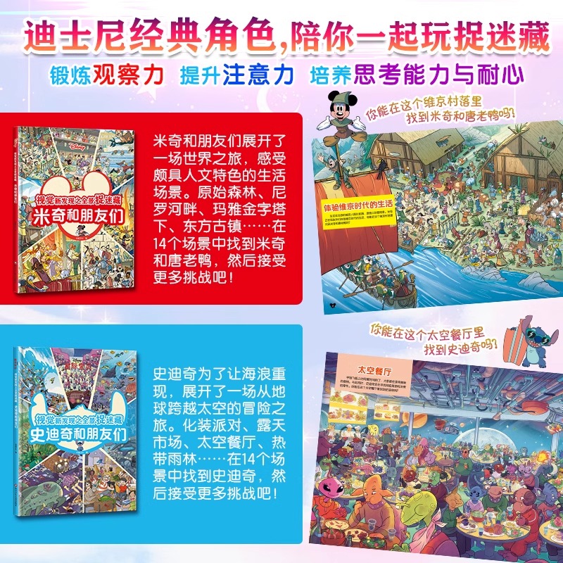 米奇和朋友们 视觉新发现之全景捉迷藏 史迪奇和朋友们 经典 图画书小学生专注力训练书 全套2册 角色找找看找东西 迪士尼星际宝贝