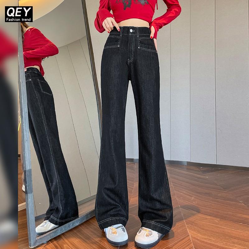 拖地裤 黑色高腰阔腿牛仔裤 直筒宽松显瘦小个子窄版 秋季 女2025新款