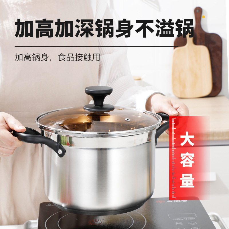 加厚不锈钢汤锅带盖汤桶大容量家用商用双耳电磁炉明火通用卤肉桶