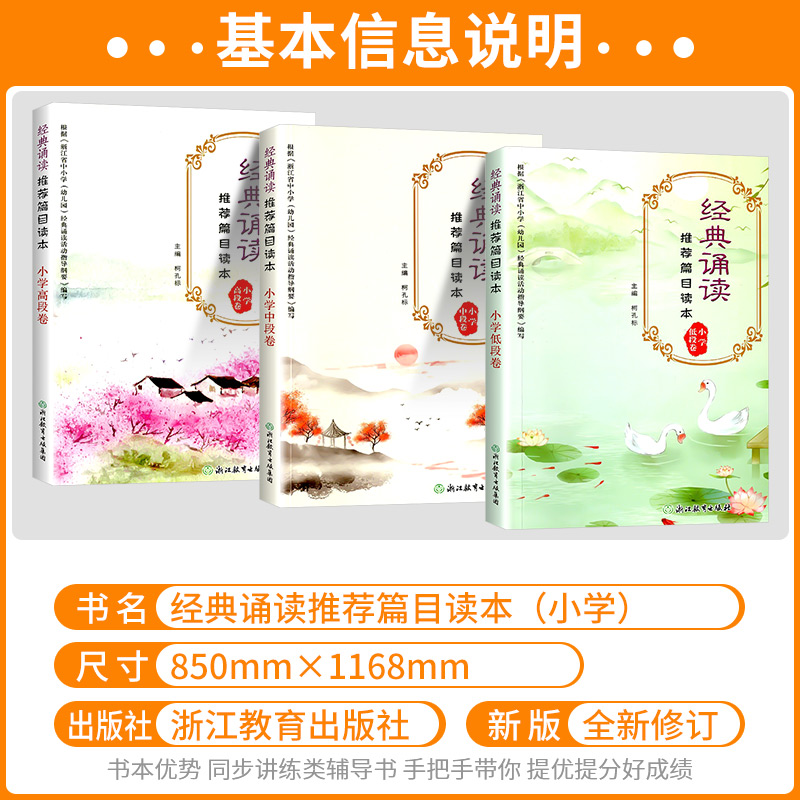 小学生1 经典 小学低中高段卷 篇目读本全套3册 6年级通用语文必背古诗词70首80首古诗文诵读唐诗宋词大全集彩图注音注释 诵读推荐