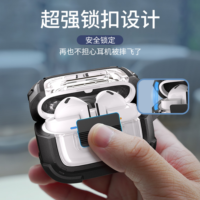 Buds Pro耳机壳新款 3保护壳套高级半透磁吸锁扣四角加固防撞防摔带挂扣赠清洁笔 Buds3 牧行者适用三星Galaxy