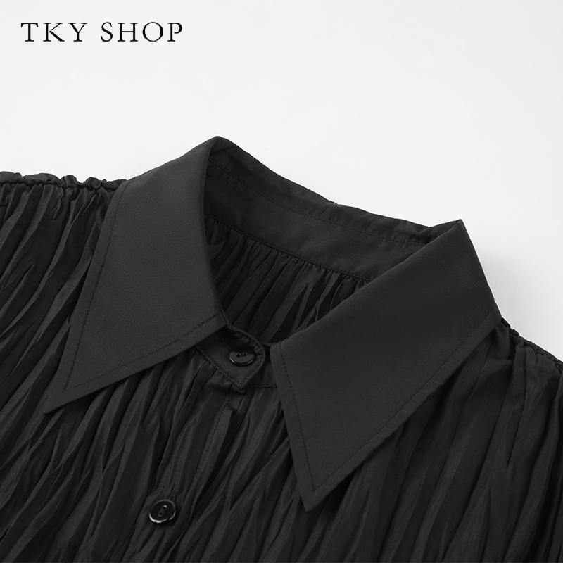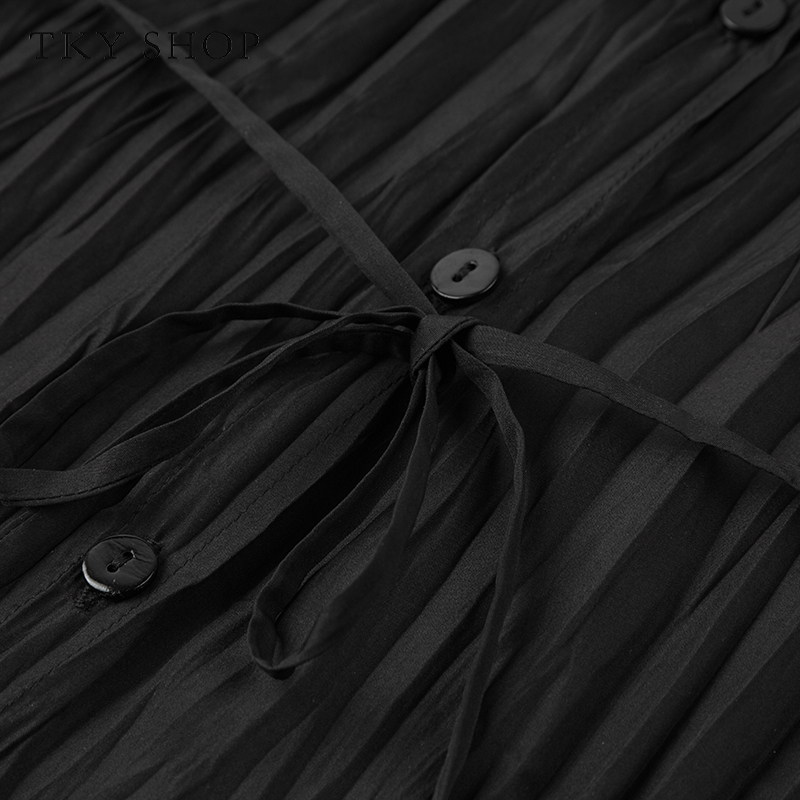 蓝色衬衫 风琴袖 法式 可拆蝴蝶结职业正装 飘带上衣 秋季 开春长袖 新款
