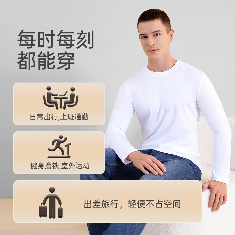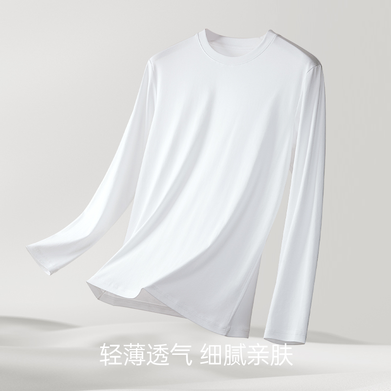 T恤100%棉简约体恤打底 纯棉全棉圆领长袖 三针2025春秋新款 男士