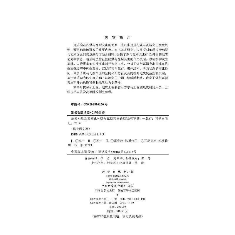 地质构造及其演化对煤与瓦斯 科学出版 突出 韩军 社 控制 全新正版
