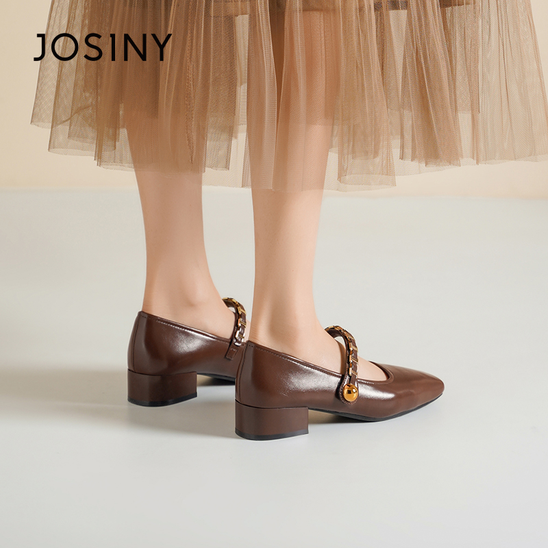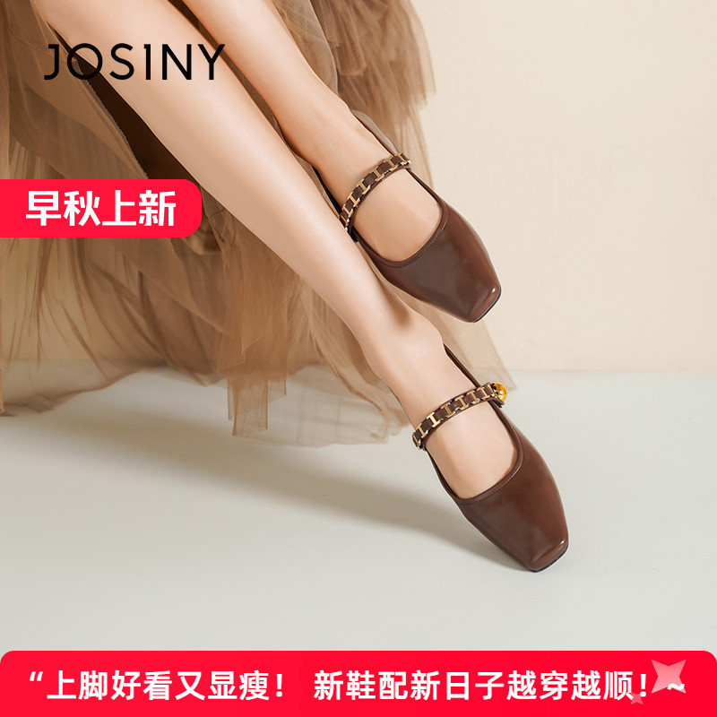 女 羊皮芭蕾玛丽珍单鞋 董洁董璇小酒窝同款 真美诗摩卡慕斯25秋新款