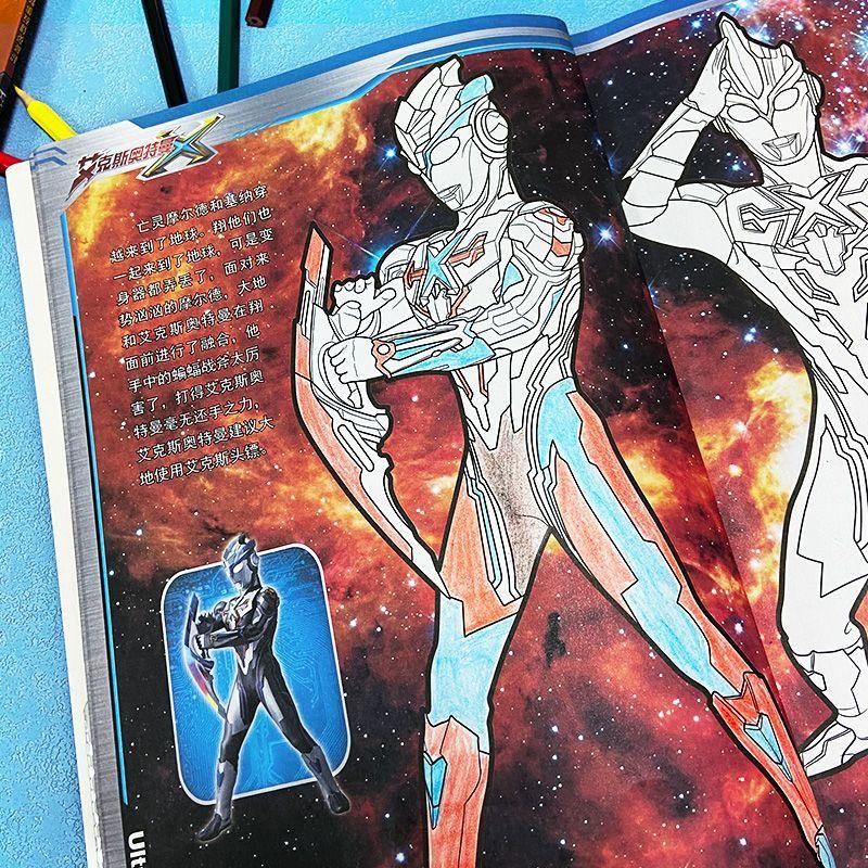 奥特曼故事涂色本儿童画本画画画册卡通怪兽动漫3 8男女通用涂鸦幼儿启蒙素材益智手绘超级英雄简笔画全四册