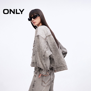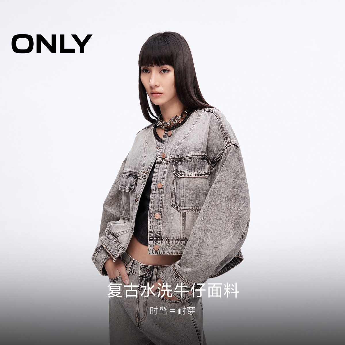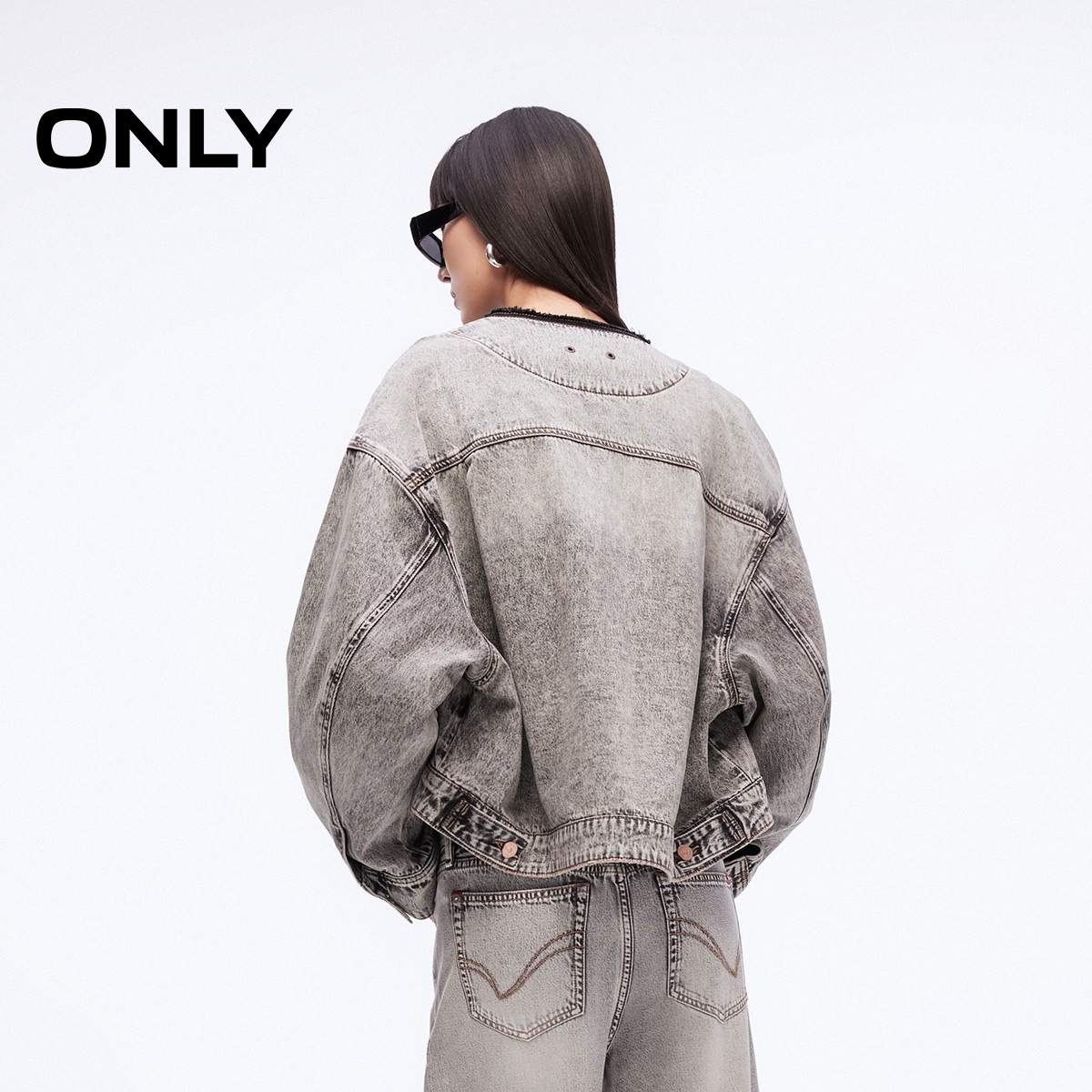 毛边圆领宽松落肩短款 复古水洗个性 牛仔外套女 新款 ONLY2025秋季