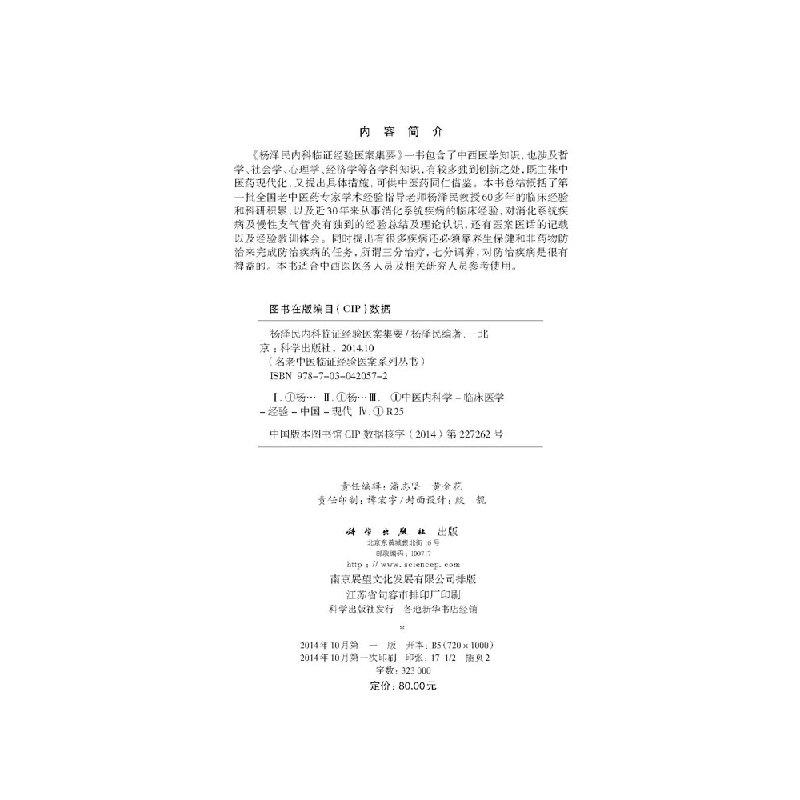 科学出版 全新正版 著 杨泽民 社 杨泽民内科临证经验医案集要