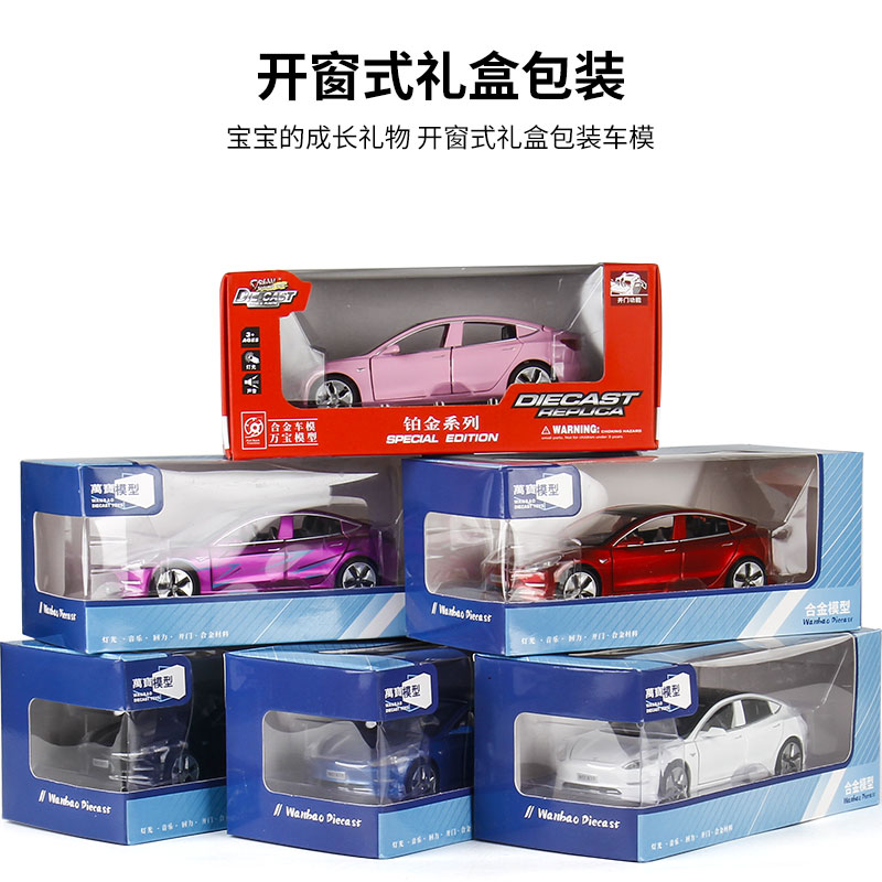 32特斯啦Model3合金车模型声光回力儿童玩具车仿真金属车模摆件