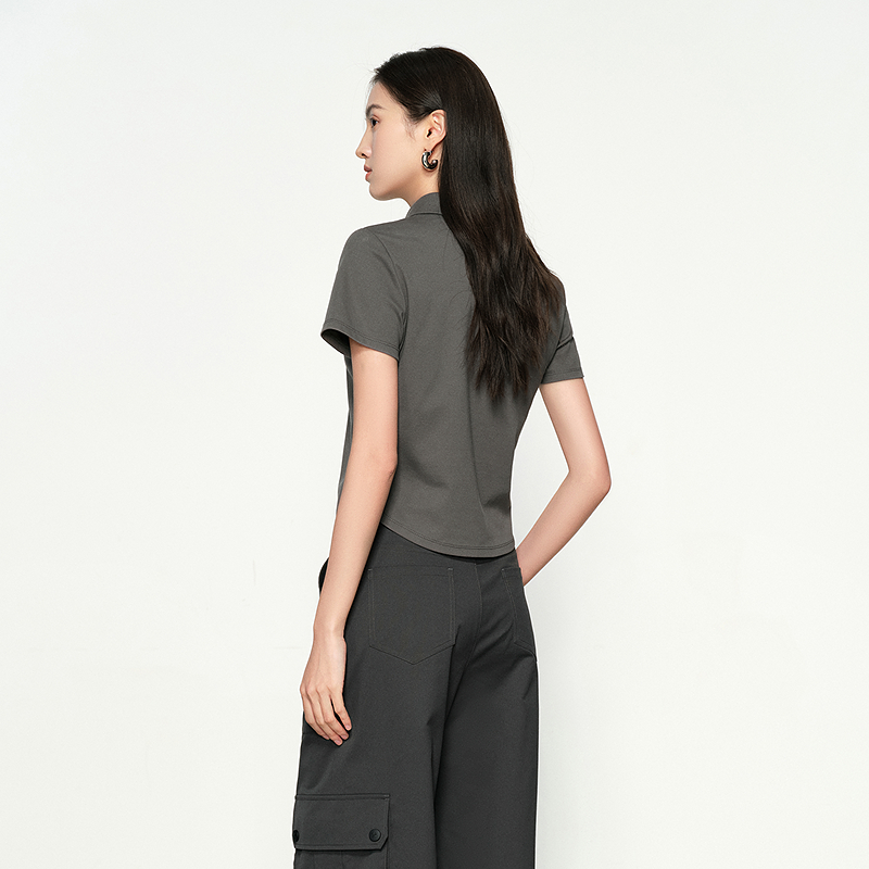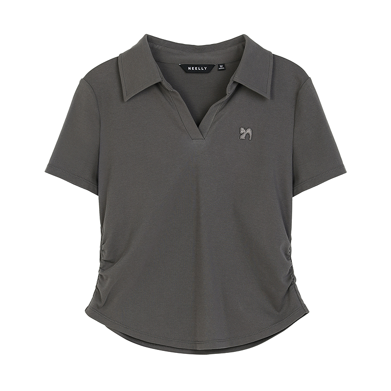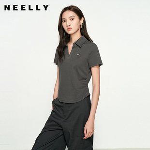 T恤女时尚 POLO领显瘦休闲短袖 设计上衣 秋新款 NEELLY纳俪商场同款