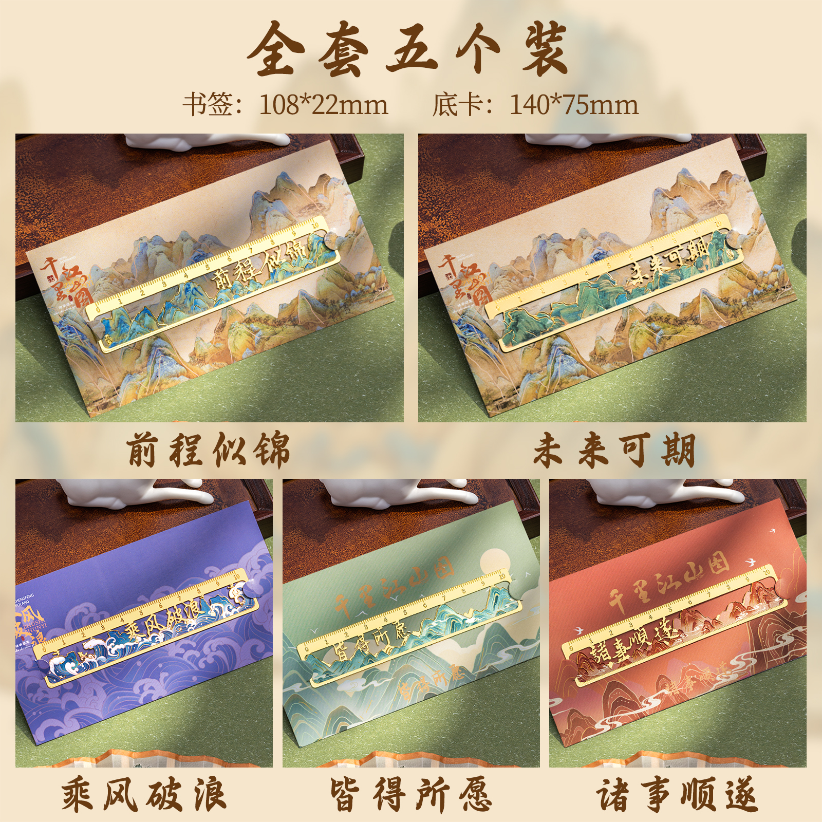 金属镂空书签文创纪念品金属尺子千里江山图古典中国风黄铜尺