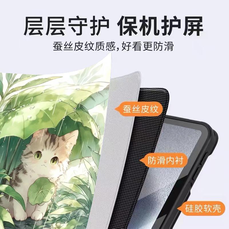 树叶小猫适用华为matepad11.5s平板壳air12寸畅享气囊m6m5青春版 防摔9.7 带笔槽荣耀x9保护套v8pro卡通9柔光版