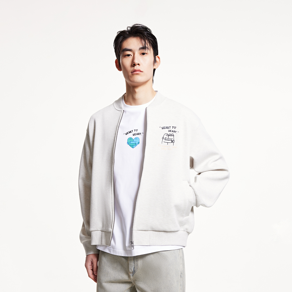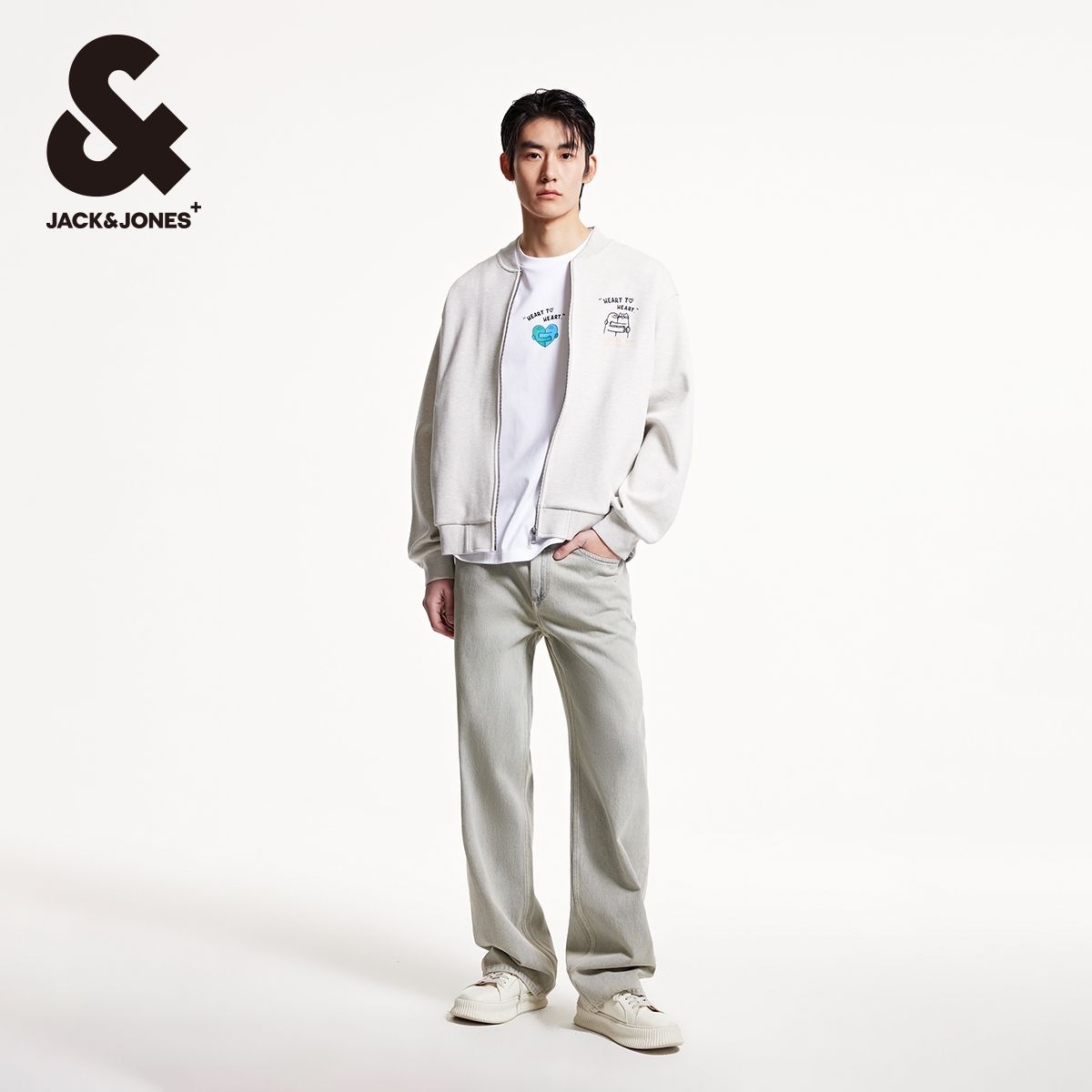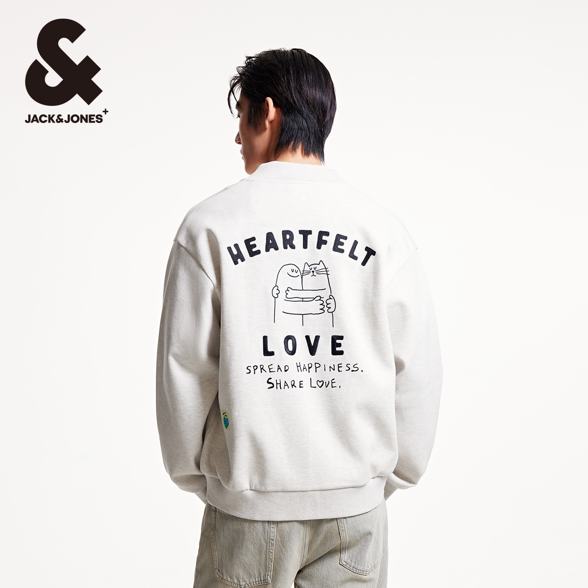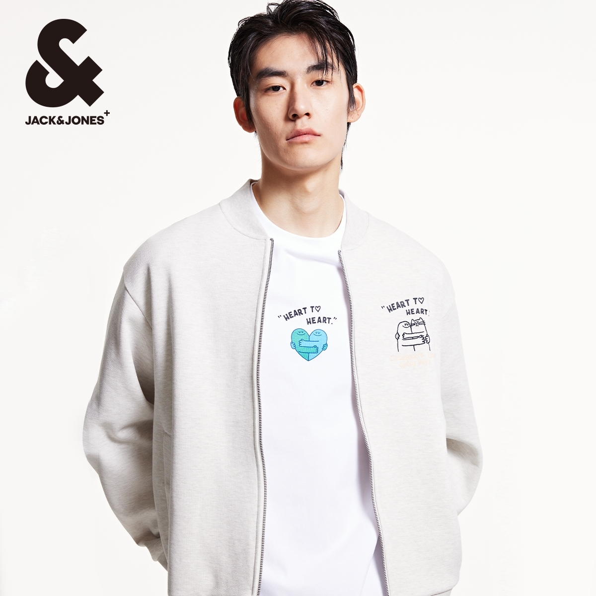 日常休闲宽松棒球领卫衣外套男装 杰克琼斯BIG 新款 春季 HUG联名款