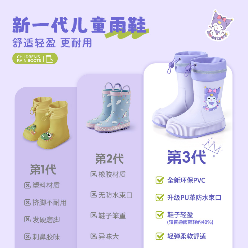 中大童高筒 防水防滑雨靴小孩宝宝小学生上学专用水鞋 儿童雨鞋 女款