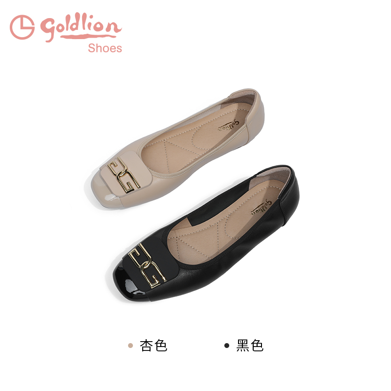 方头低跟休闲百搭真皮单鞋 金利来平底奶奶鞋 女春秋一脚蹬通勤女鞋