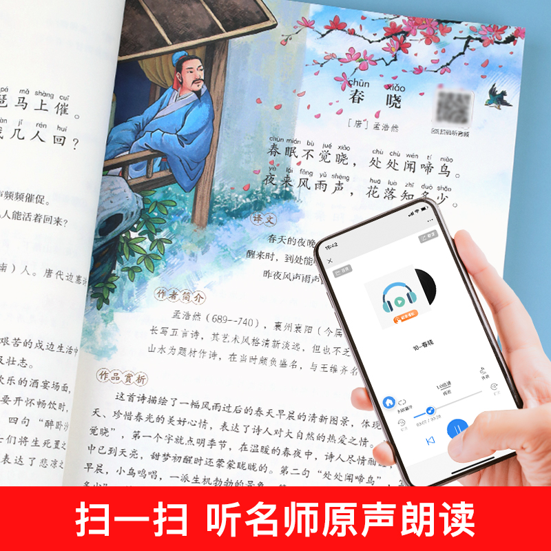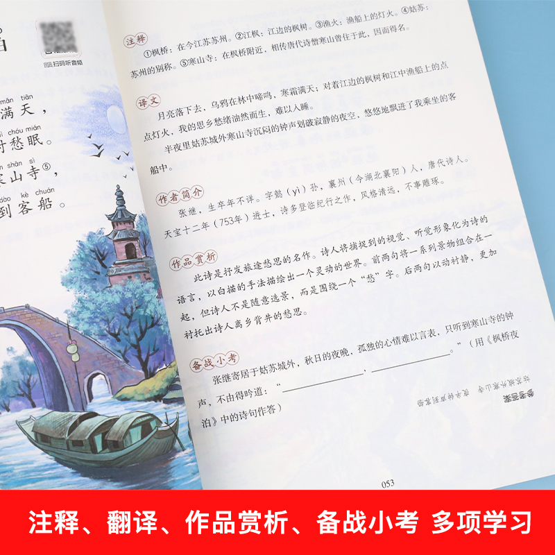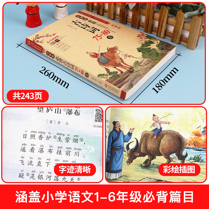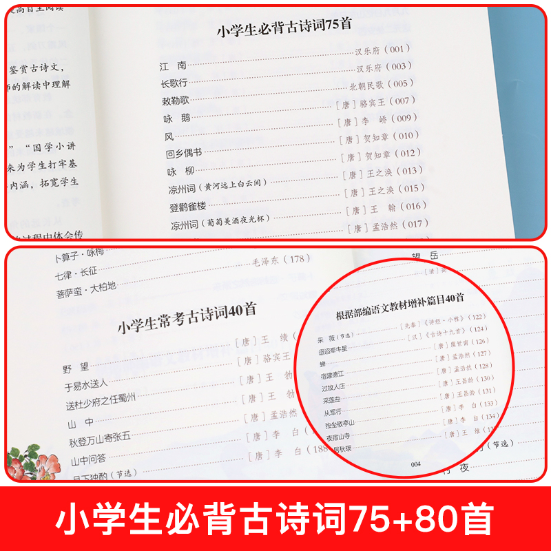 小学一二三四五六年级唐诗宋词必读注音版 小学生必背古诗词75首十80首正版 155首人教部编版 完整版 必背文言文全解必备 推荐