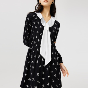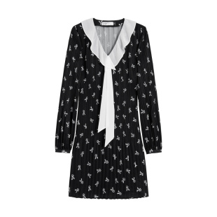 乐町蝴蝶结背心长裙冬季 基础简约黑色连衣裙收腰大裙摆针织裙 新款