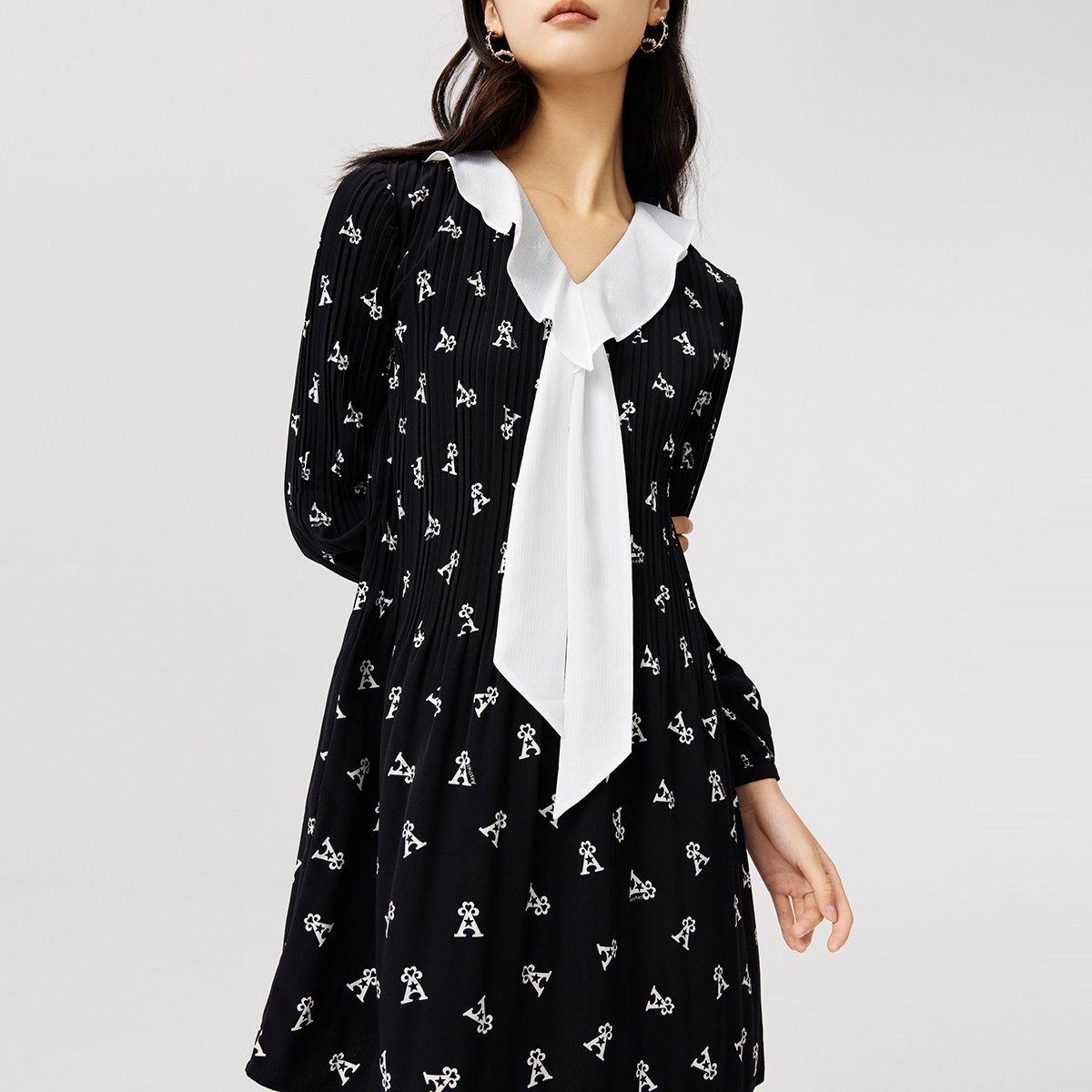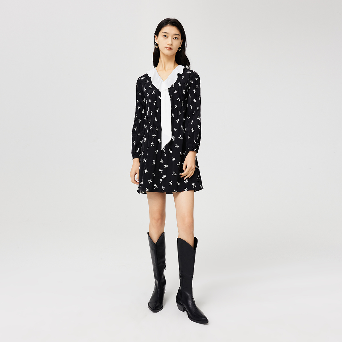 简约小个子黑裙 女装 秋水伊人文艺气质假两件连衣裙2025年冬季 新款