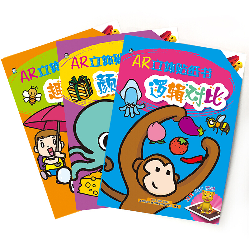 6岁 畅销书籍 AR立体贴纸书 共3册 儿童粘贴纸书 套装 书籍 B套 儿童益智游戏贴纸书有声阅读趣味贴纸书儿童故事贴贴纸 正版