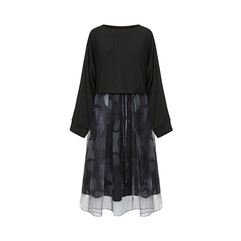 连衣裙 复古波点格雷系显瘦A版 乐町假两件拼接连衣裙年冬季 新款