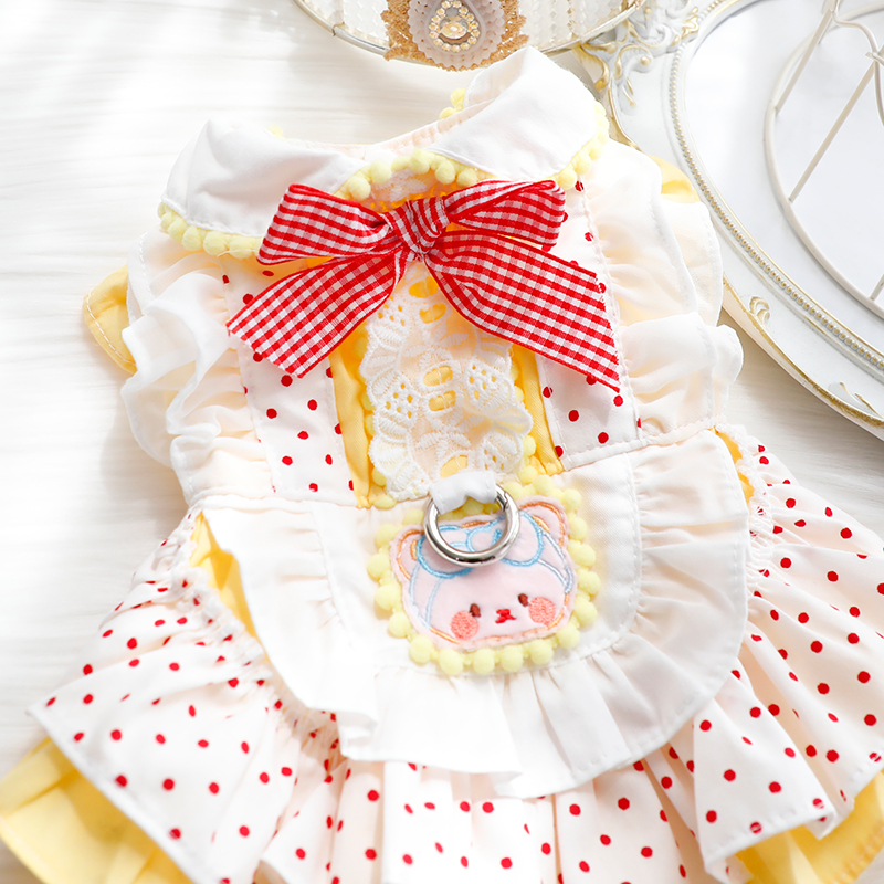 狗狗衣服春秋装 猫咪公主裙红点黄熊牵引洛丽塔小型犬泰迪宠物4567