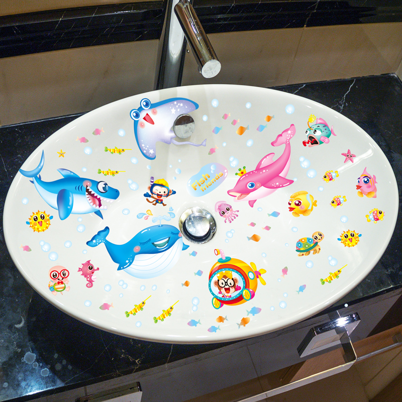 卫生间厕所洗手台瓷砖贴纸防水自粘装 饰卡通海洋鱼墙贴画遮丑浴室