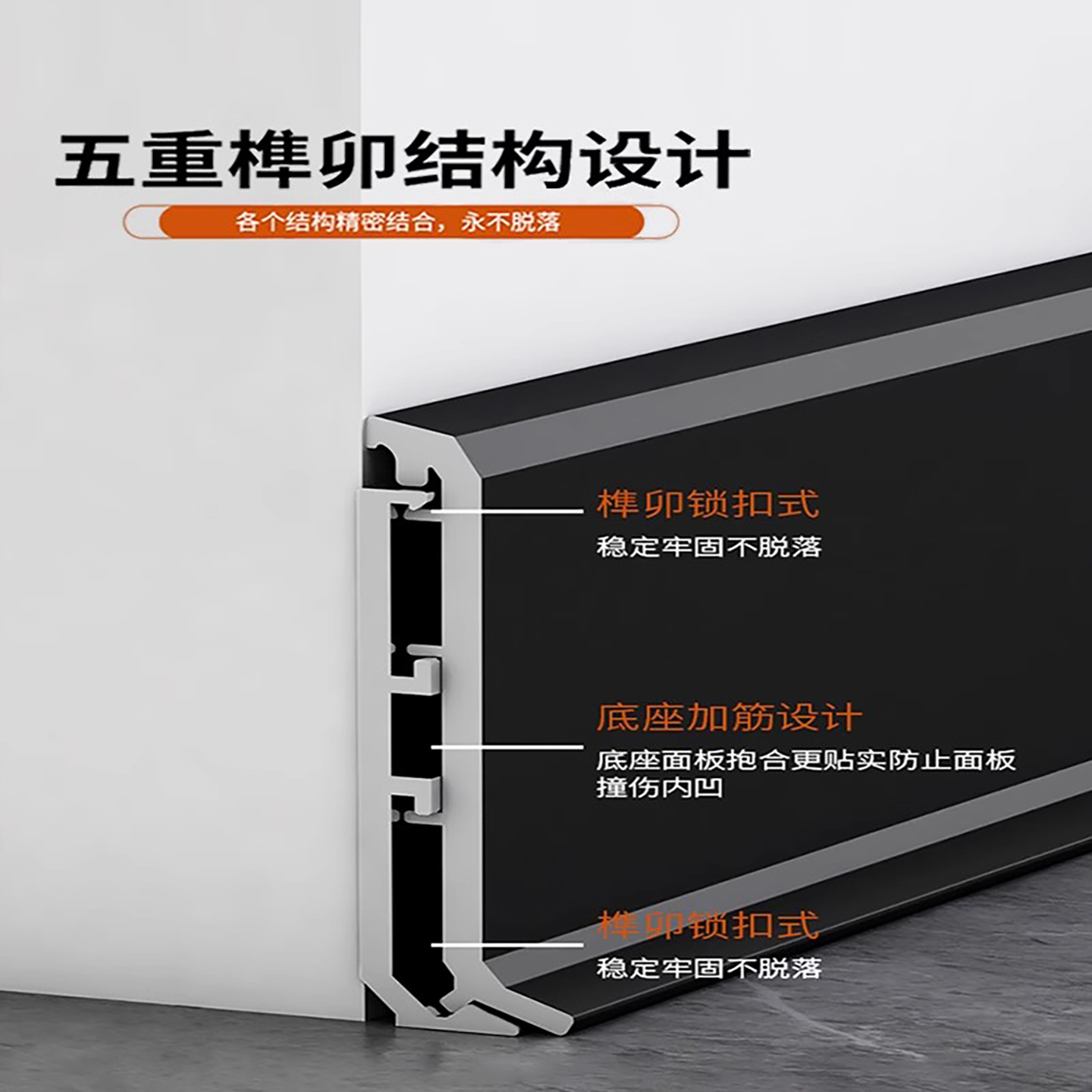 铝合金踢脚线卡扣式 全铝贴脚线条6cm8cm不锈钢超薄极简金属地脚线