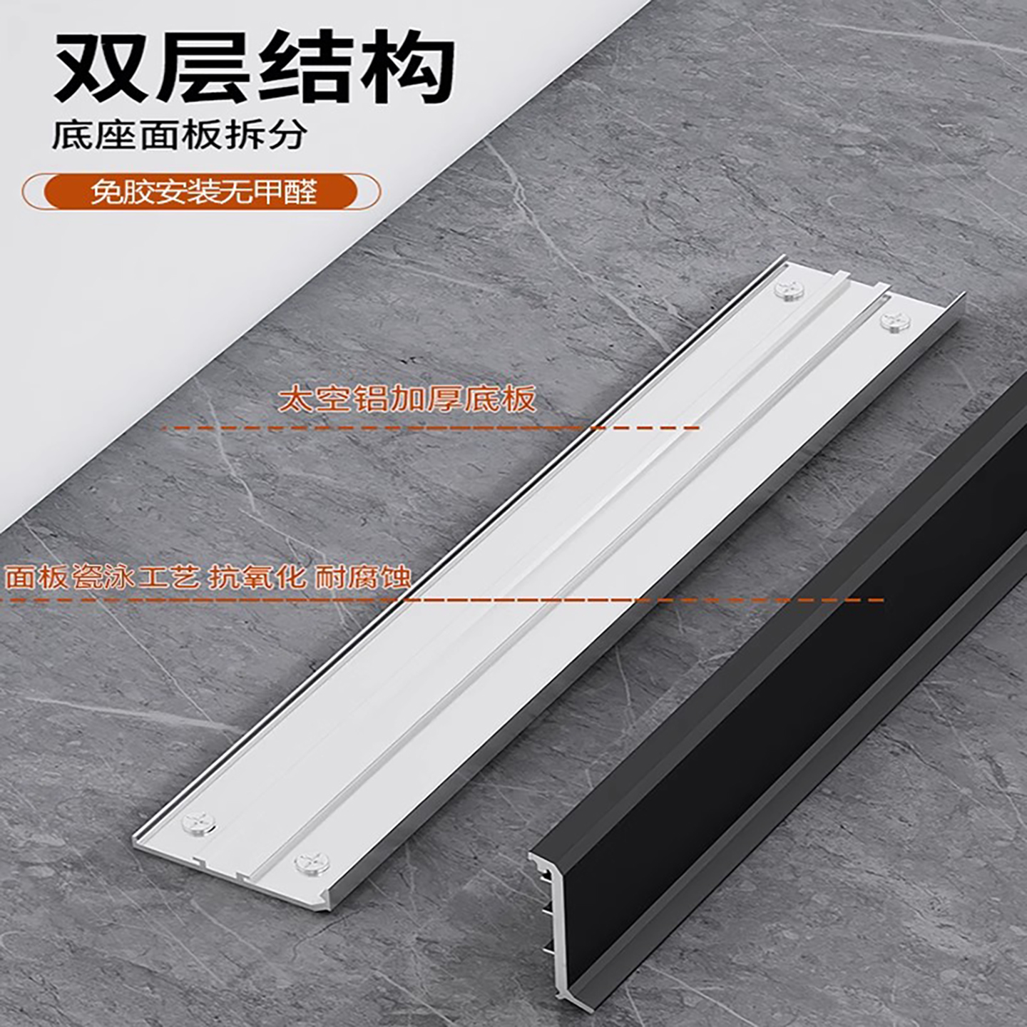 橱柜铝合金踢脚线黑色厨房踢脚板地脚线橱柜围板厨柜底部挡水铝板