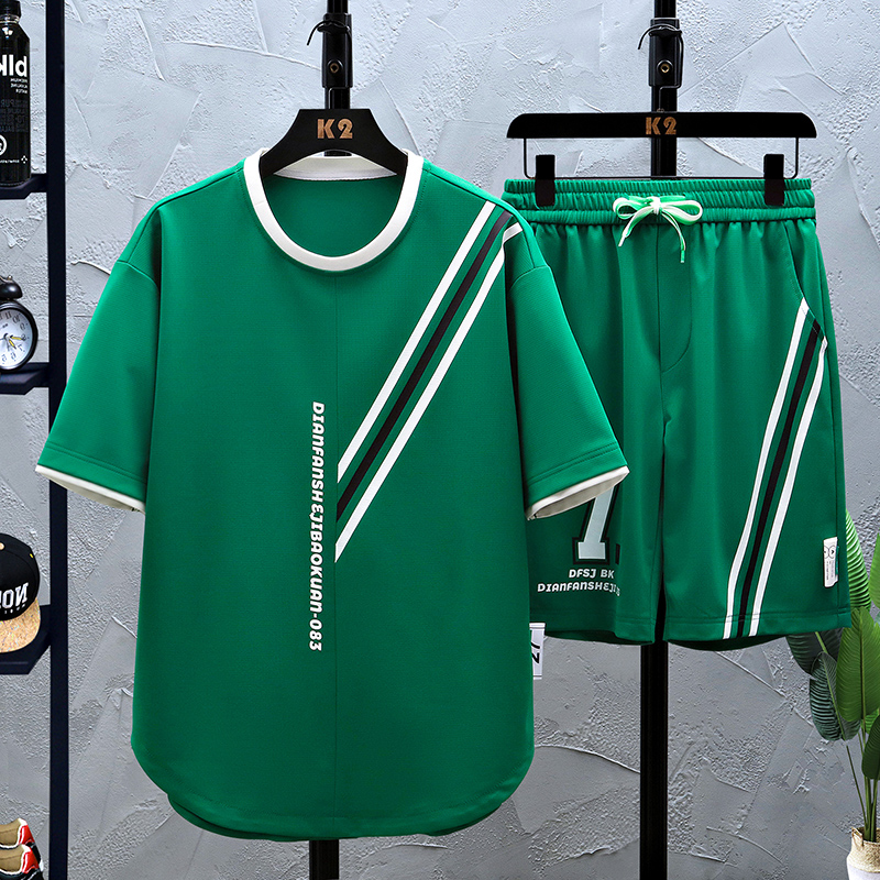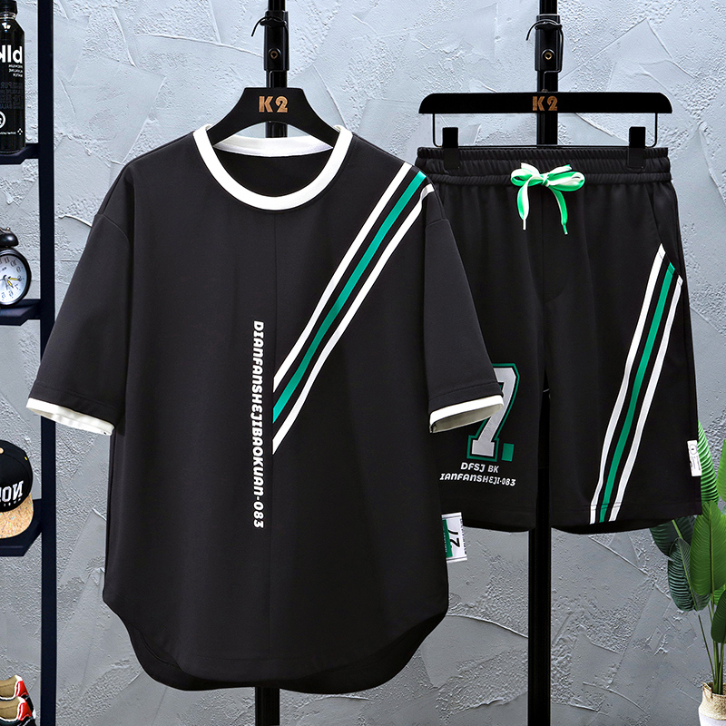 t恤男套装 帅气运动长裤 夏季 休闲一套搭配衣服男装 两件套 薄款 短袖