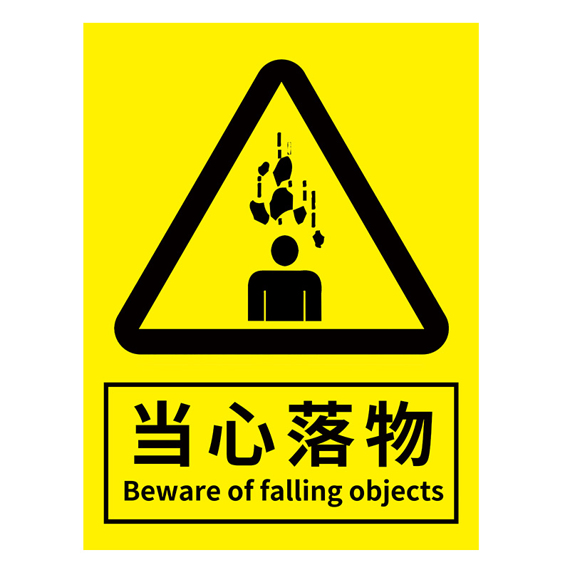 当心落物警示牌当心坠物标识注意安全小心高空坠物提示标志贴纸工地吊物施工高空作业当心坠物警示提示告知牌