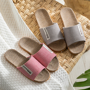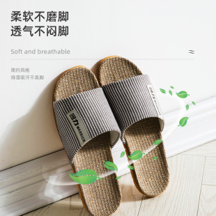 办公室麻拖 室内家居防滑耐磨木地板家用情侣四季 回力亚麻拖鞋 男士