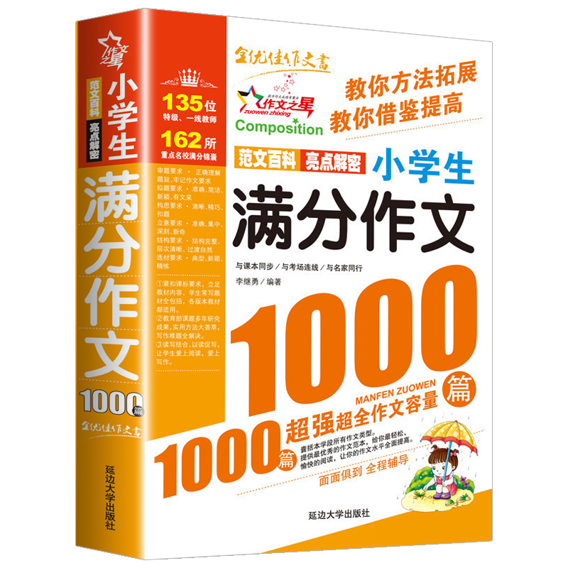 小学生满分作文书大全三四至五六年级人教版 专用范文百科亮点揭秘与课本同步一线语文名师同行提升成绩写作技巧畅销 1000篇老师推荐