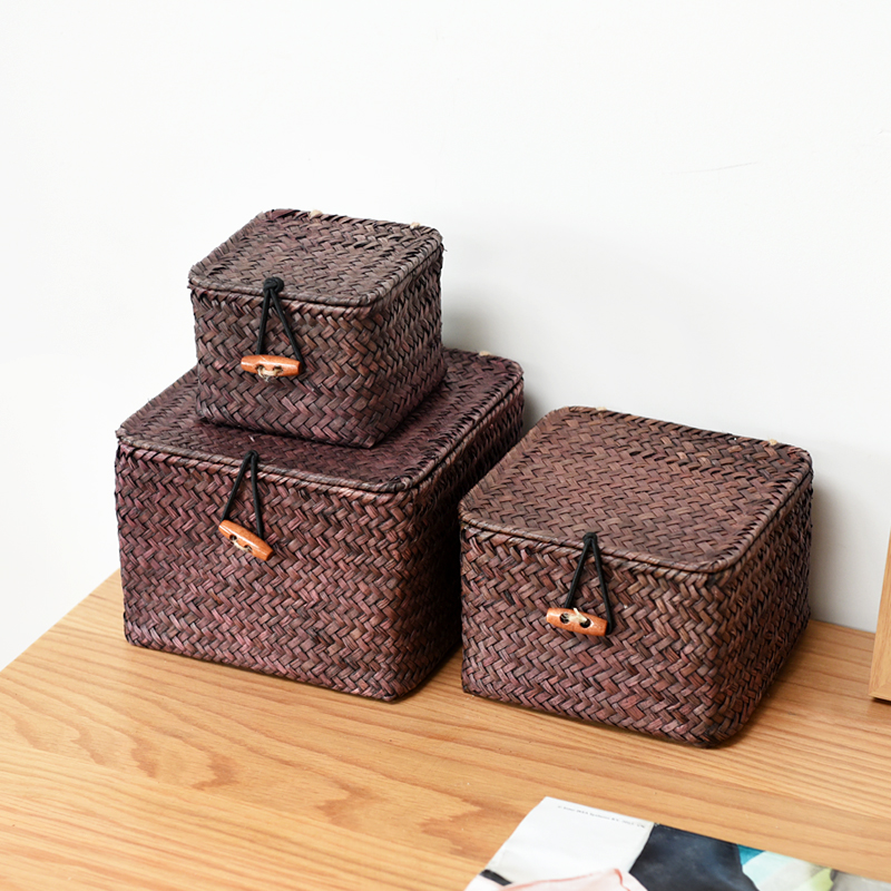 正方竹编收纳筐藤编伴手礼品盒小方盒海草收纳盒收纳篮迷你针线盒