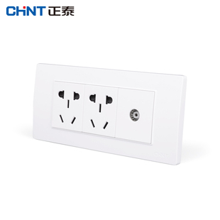 三位二插座加电视插座 NEW5D钢架炫白色 正泰电工 118型插座面板