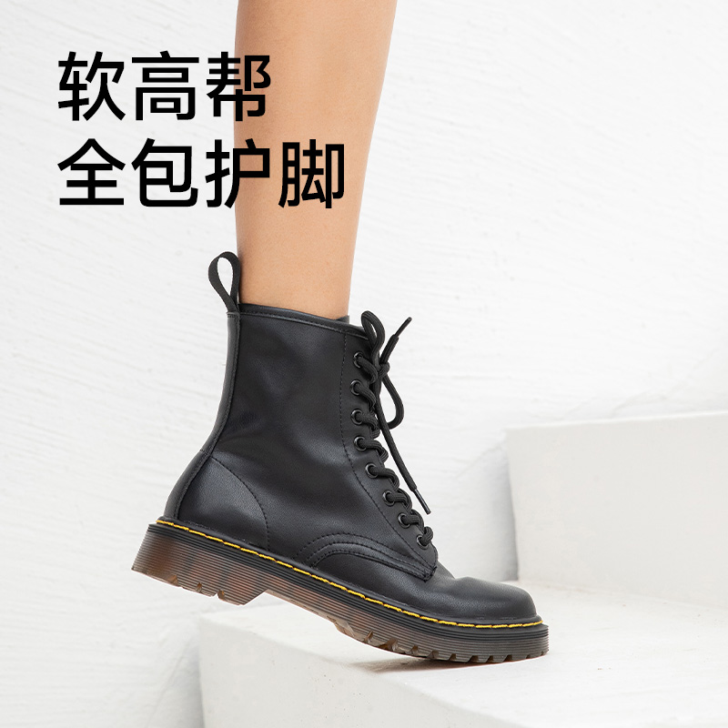 UBZ 春秋单靴英伦风厚底真皮短靴百搭中筒靴 防水马丁靴女2025新款